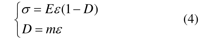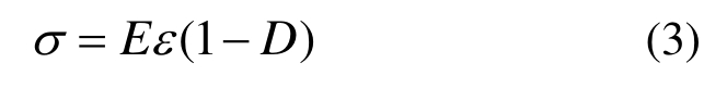 由损伤力学理论,弹性材料在单轴压缩下的损伤本构模型为[12]: