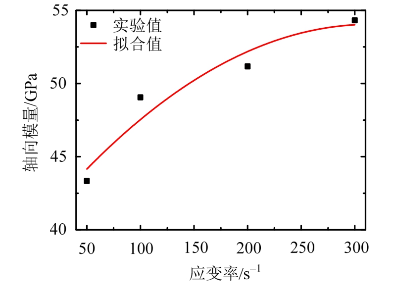 由式(5)拟合可得到轴向弹性模量E与应变率