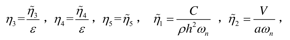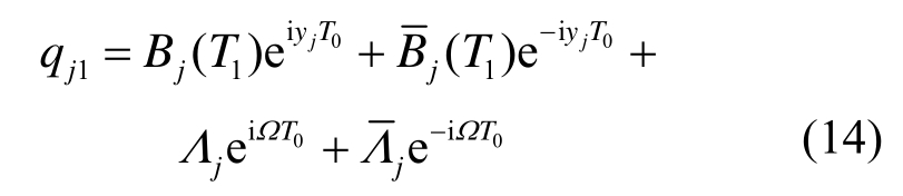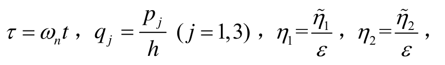 为研究系统弱非线性振动,可引入小参数ε,并将式(3)代入式(2),应用伽辽金法进行离散,可推得由随从力简协激发的关于时间变量的无量纲化非线性振动微分方程组: