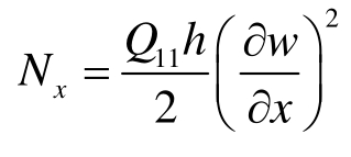 根据叠层板的动能、势能表达式并应用哈密顿原理,可以得到正交各向异性叠层条形板的横向非线性振动方程为: