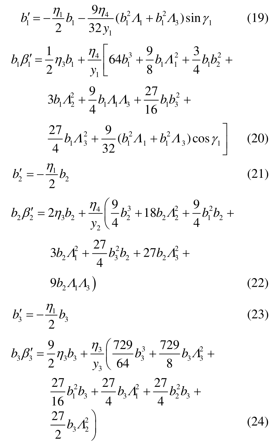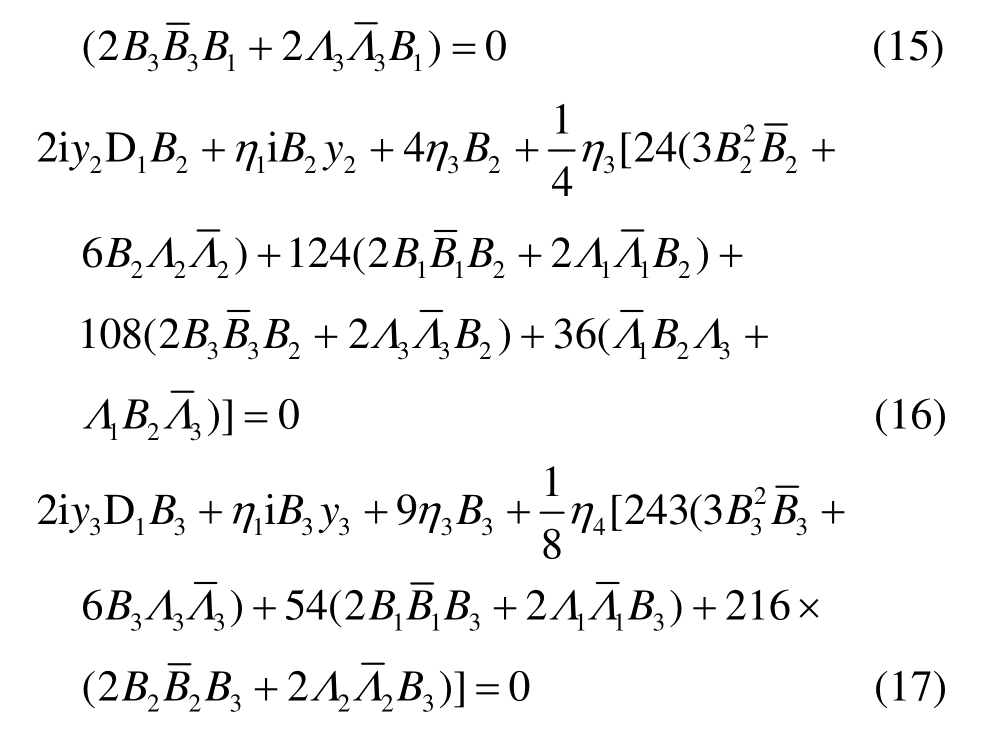 将式(18)代入式(15)~式(17),进行实部与虚部分离,并令γ1=σT1-3β1,得到: