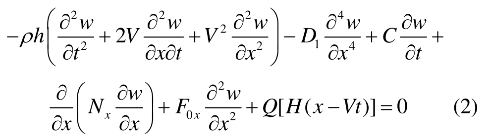 如图一所示正交各向异性叠层板上作用有随板一起运动的随从荷载Q,速度为V,合力为: