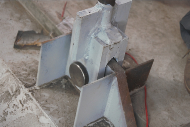 试件制作包括钢结构加工、连接件安装、混凝土浇筑等。进行T型连接件安装时,首先需将T型钢板焊接到预定位置,然后制作预定尺寸的塑料泡棉,并将其贴于T型钢板的外侧及顶部,见图4。