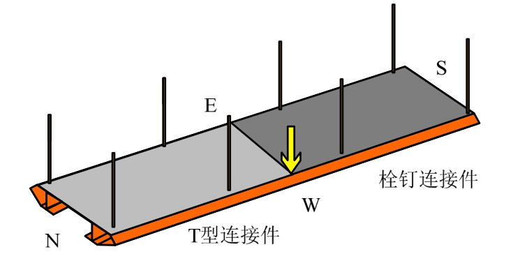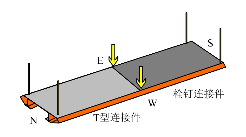 结果表明相较于北侧扭转刚度,构件南侧扭转刚度更大一些。T型连接件的使用会使得桥面系扭转刚度(横桥向刚度)有一定程度降低,但降低幅度不大(约10%)。基于T型连接件的构造,初步分析可认为T型连接件外包的塑料泡棉会使得横桥向刚度产生一定程度降低,故需要进一步探究T型连接件对横桥向刚度的影响。