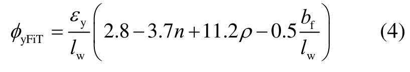式中:下标y表示屈服状态(yield);下标FiT表示翼缘受拉(Flange in Tension);n为轴压比;ρ为纵筋配筋率;bf为翼缘宽度;lw为腹板截面高度。