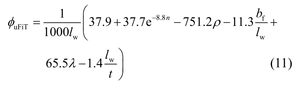 同样回归得到翼缘受压方向极限曲率系数的计算表达式: