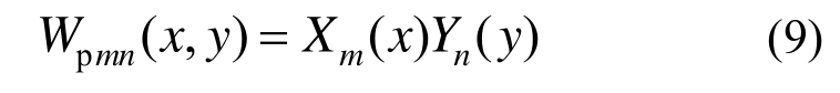式中:Xm(x)为钢桥面沥青铺装x向的振型函数;Yn(y)为钢桥面沥青铺装y向的振型函数。
