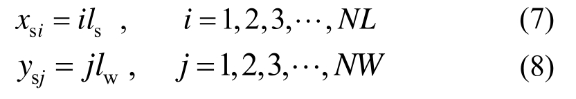 式中:ls为x向离散间距;lw为y向离散间距。