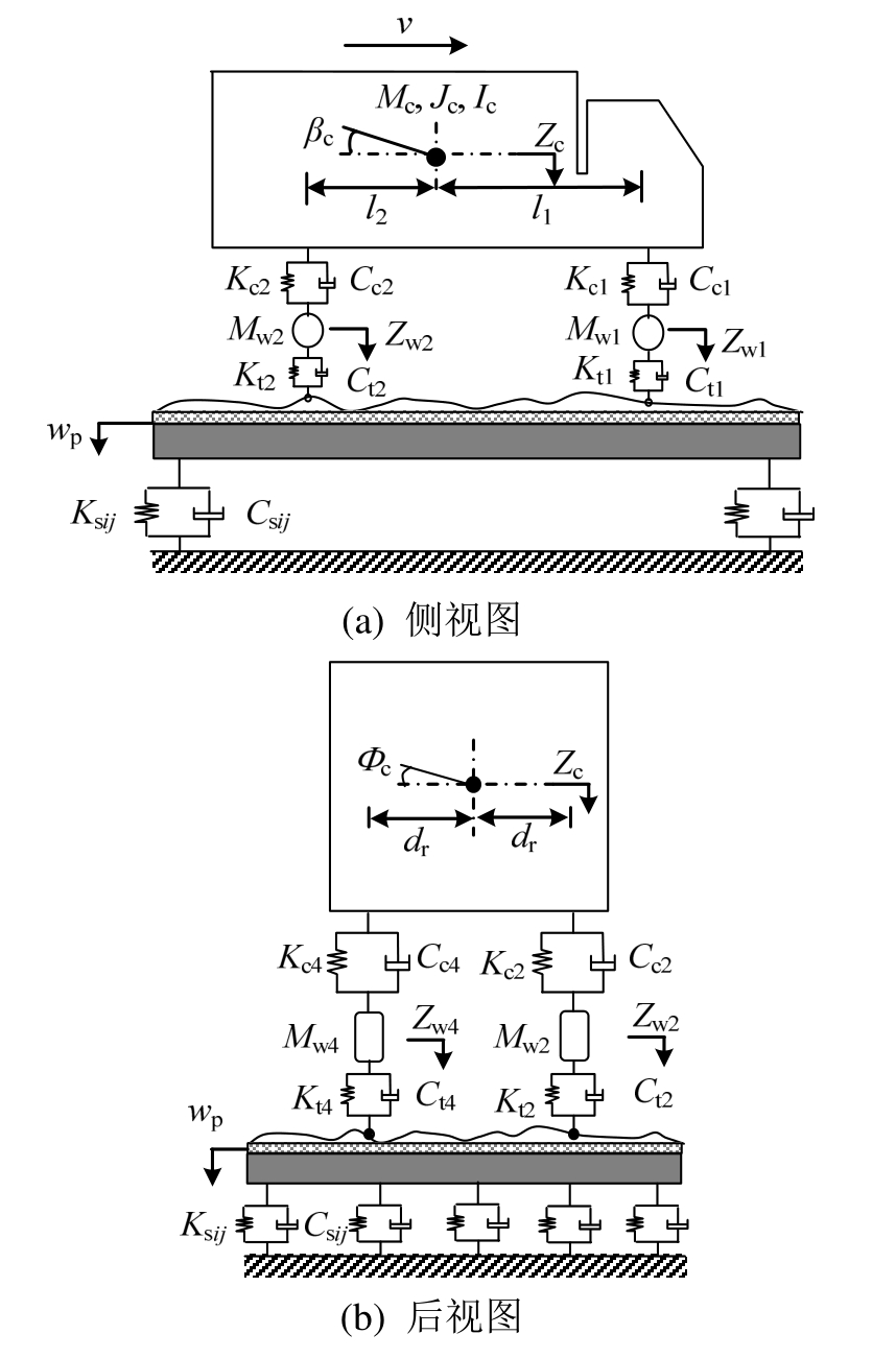 综上,对于车桥耦合下动力响应的研究已基本形成完善体系,但很少有学者将铺装层作为车桥耦合模型的一部分,来研究钢桥面沥青铺装层的动力响应。因此,建立简化且符合实际振动的车辆-沥青铺装层-钢桥耦合动力学模型,来研究钢桥面沥青铺装层的车桥耦合动力响应特性和规律十分必要。