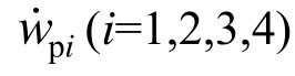 分别为各轮胎垂向振动速度;