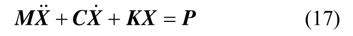 分别为系统的加速度、速度和位移;P为系统载荷。