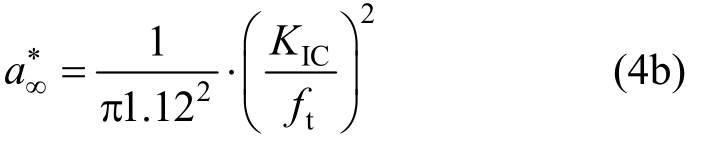 若两极限准则——断裂韧度KIC和拉伸强度ft的具体数值都已知,则可描述小尺寸试件的准脆性断裂状态。另一方面,如果已知小尺寸试件的结构特性,也可以外推确定两个无尺寸效应的材料参数——KIC和ft。