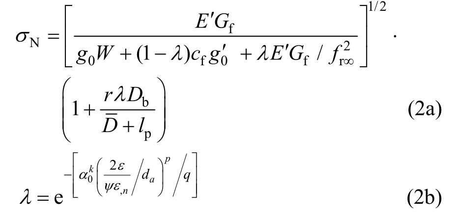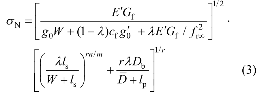 Bažant教授提出的尺寸效应理论模型——SEM (size effect model) [26,31]中,给出了无缝试件强度的名义应力公式。