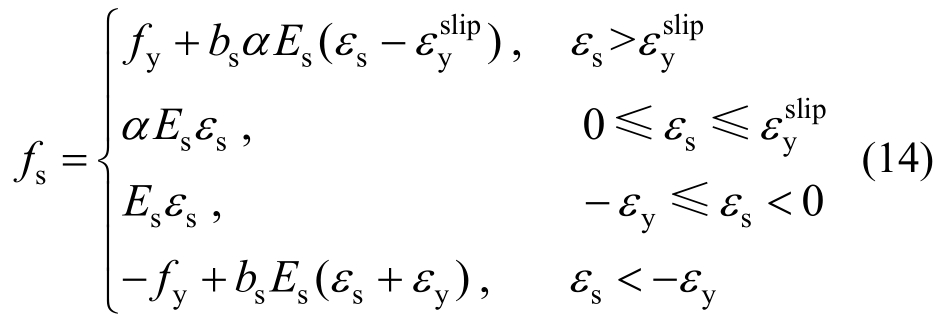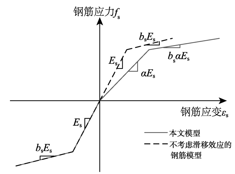 综上,本文所提考虑滑移效应的双线性钢筋本构模型可表示为: