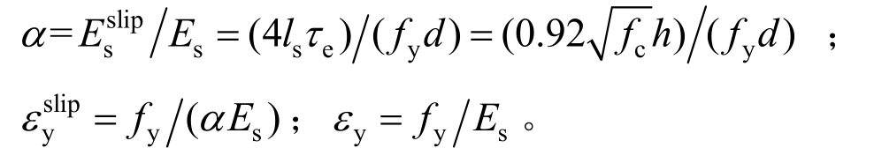 分别为考虑滑移效应的钢筋弹性模量和硬化率。