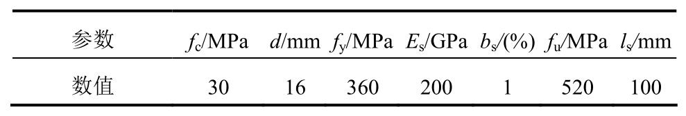 参数 fc/MPad/mmfy/MPa Es/GPa bs/(%) fu/MPals/mm数值 30 16360 200 1 520100