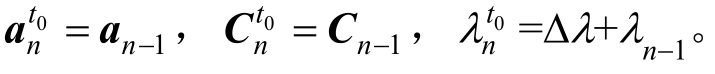 1) 已知量:① Rn-1的解λn-1、an-1、Cn-1;② 加荷载时施加的固定荷载增量系数Δλ,或加位移时对第I个自由度施加的固定位移增量ΔaI,即: