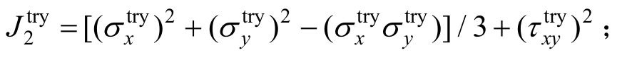 为由试探应力σtry =σ0+Dedε算得的偏应力张量第二不变量,平面应力问题中,
