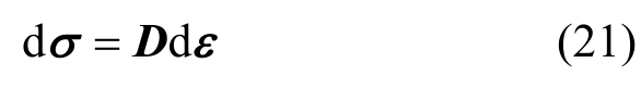 式中:dσ为应力增量;dε为应变增量;D为材料刚度矩阵。D为: