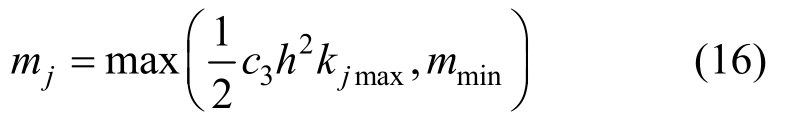 式中:c3为系数,值大于1;mmin是结点质量下限值,其作用是避免结点负刚度而构造出负的结点质量。本文按式(16)逐结点算得mj后构造Mn。