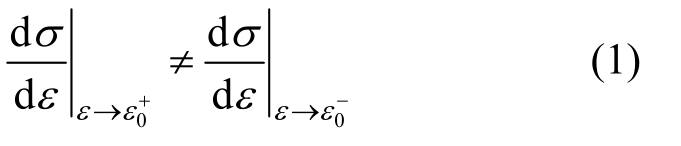 本文讨论的依赖应变历史材料(SHDM)是指材料点应变加卸载时应力响应不同的材料。在一维情况下,SHDM满足 [1]: