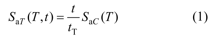 式中:T为结构的自振周期;SaC(T)为规范反应谱;t为任意耐震时刻;tT为用于缩放耐震时程的目标时间;SaT(T,t)为t时刻的目标加速度反应谱。
