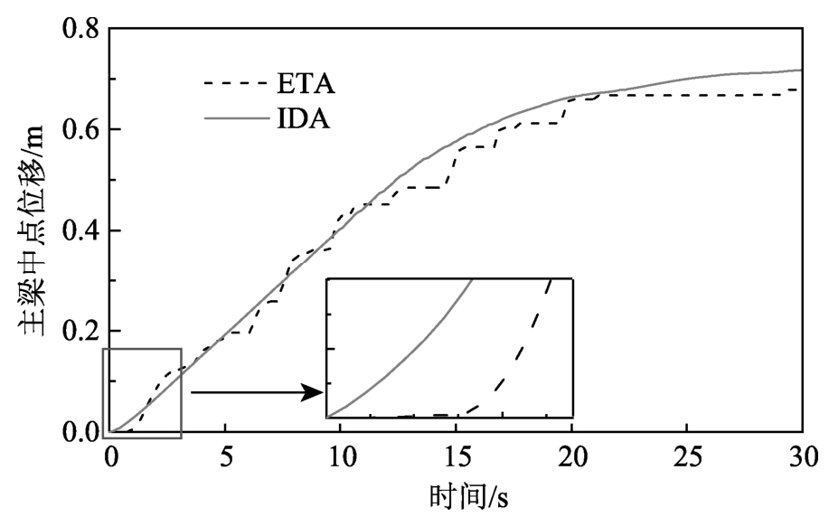图7 IDA和ETA方法下主梁位移对比