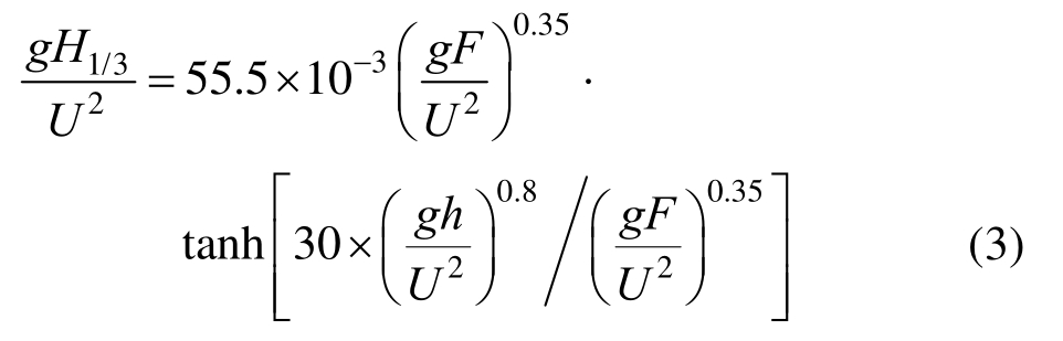式中:g为重力加速度;U为风速;F为风区长度;h为水深。