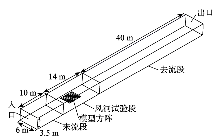 选取北风试验条件下的工况进行CFD计算。网格的划分方法与实体方阵一致,网格单元总数约1700万,如图14所示,计算域主体部分与风洞试验段尺寸一致,另外附加了一定长度的来流段与去流段。