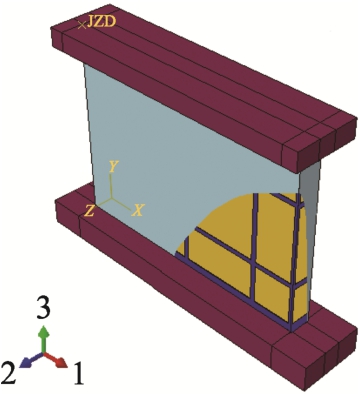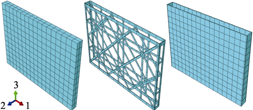 对于加固砌体的建模,通常思路是选用实体部件建立砌体墙片;线性部件或壳体部件模拟加固钢材和加固面层。但此类建模方法,所用单元类型多,维度不一,单元连接处理不理想;且线形部件无法模拟钢板屈曲与焊口断裂现象。基于上述原因,文中砌体及各类加固材料均选用实体部件建立。