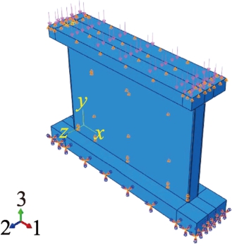 7) 处理边界条件。考虑到对拉螺栓及试验墙体侧向支撑的作用,通过对加固钢板对拉螺栓连接处设置边界条件来限制平面外位移,见图3。