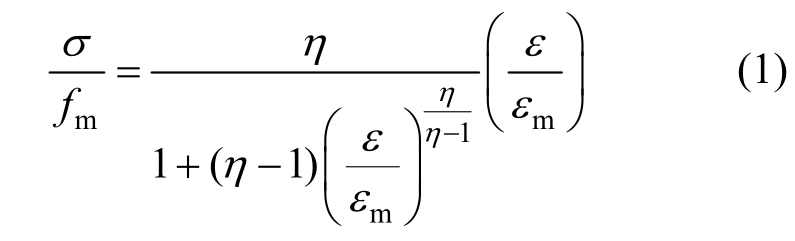 聚合物砂浆受压本构关系选用朱伯龙模型[20]: