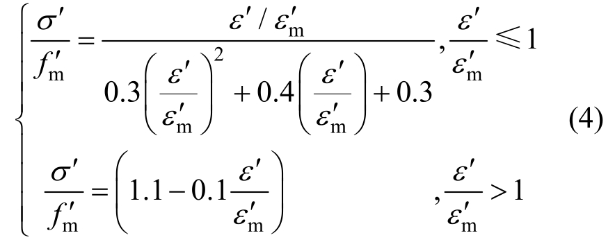 分别为聚合物砂浆受压应力值、抗压强度平均值;ε′、εm′分别为聚合物砂浆受压应变、峰值应变。